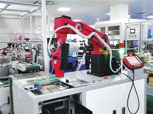泸溪高新区华美兴泰公司生产车间里的机械臂。 向晓玲 摄