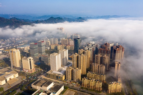晨雾中的湘西高新区。 张术杰 摄