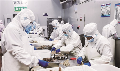 位于湘西国家农业科技园核心区的德农牧业集团食品加工车间,工人们正在加工湘西黄牛系列食品。李寒露 摄