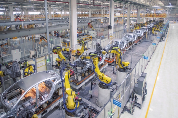长沙比亚迪雨花基地焊装工厂,智能化生产线上的机械臂伸缩旋转,有条不紊地完成焊接工作。(资料图片)湖南日报全媒体记者辜鹏博摄