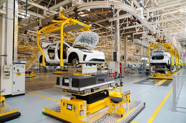 广汽埃安总装车间汽车生产线。