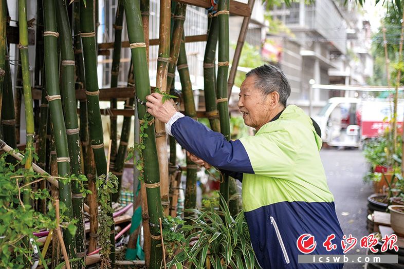 当天,徐元正一边查看枝条长势,一边向记者介绍竹林的故事。徐元正今年87岁,是湖北枣阳人,老伴周秀德今年86岁,是河南商丘人。1963年,两人毕业于中南矿冶学院(中南大学前身),而后分配到同一家单位工作,没多久就搬进了如今的金科园社区居住。