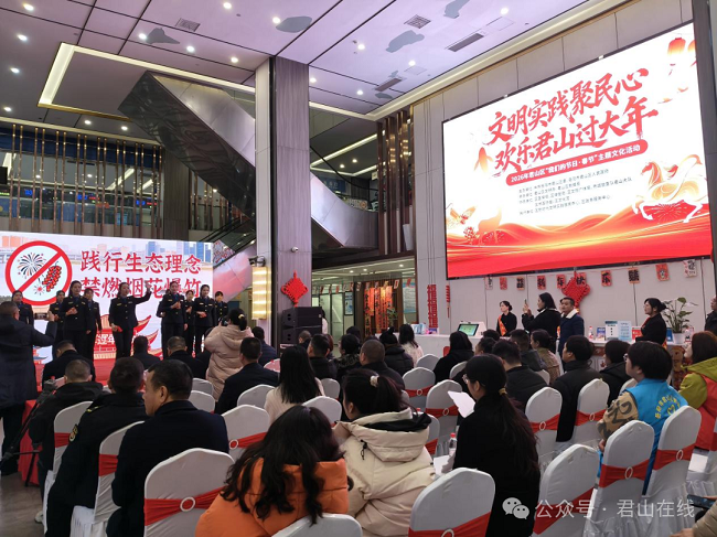 同时,区城管局、市城管支队君山大队宣讲骨干围绕习近平文化思想、党的二十届四中全会精神,结合君山“守护好一江碧水”使命任务,采取快板文艺表演形式,开展“与君说”禁炮宣讲,使城乡移风易俗更加深入人心。活动现场同步设置“湘易办”宣传专区、政策有奖问答和办事指南免费发放活动,手把手指导群众便捷办事,切实提升群众“高效办成一件事”的获得感。