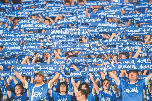 歌声阵阵,呐喊声、锣鼓声不绝于耳,望着在寒风雨雪里纵意挥洒激情的永州观众,我看到了这座城市市民的热情友善、昂扬精神风貌。难怪在去年的湘超联赛中,因草根而被人们玩笑称为“告发子球队”的永州队,能困境逆袭,惊险夺冠。在湘超联赛期间,永州名播四方,全网流量超108亿次。短短的4个月里,永州市接待了来自省内外的游客580万人次。