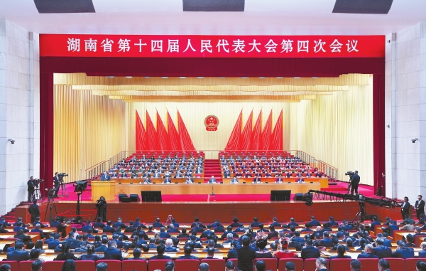 2月3日上午,湖南省第十四届人民代表大会第四次会议在省人民会堂开幕。湖南日报全媒体记者刘尚文摄