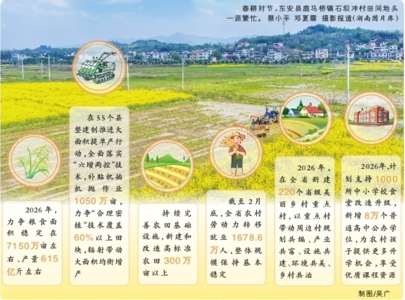 维护国家粮食安全是“三农”工作的底线任务,作为产粮大省,湖南重任在肩。今年,省委一号文件明确提出:力争粮食面积稳定在7150万亩左右、产量615亿斤左右。这一目标如何实现?
