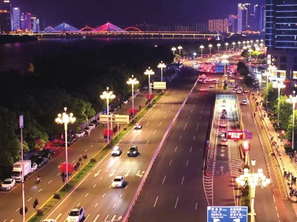广告照明提档,勾勒城市精致天际。夜色降临,一江两岸灯光璀璨,滨江新城楼宇光影流动,商业活力与城市风貌在灯火中相得益彰。长沙按照“突出重点、分类实施、全域推进”原则,整治重要商圈、城市窗口、文旅景点周边户外广告,让城市“天际线”更加清爽通透。全市244处照明不足的涵洞修缮工程正逐一落地,新装LED灯具将如星子洒落,照亮晚归人出行路。