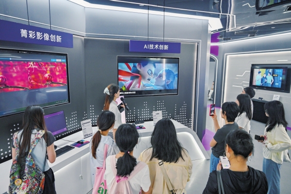 市民在马栏山音视频实验室参观音视频创新产品。湖南日报全媒体记者郭立亮摄