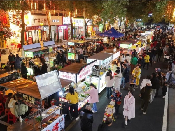夜幕降临,华灯初上。衡山县群英夜市街区内,摊位错落有致,美食鲜香扑面而来;熙熙攘攘的人群中,欢笑声、叫卖声此起彼伏。这里,是入选省级旅游休闲街区的“网红打卡地”。