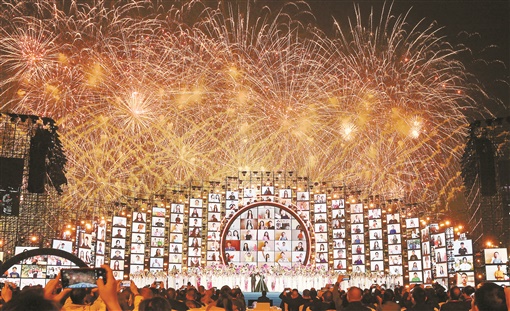 11月19日晚,首届湖南旅游发展大会开幕式暨文化旅游推介会在张家界市举行。图为合唱《我和我的祖国》。 湖南日报全媒体记者 童迪 辜鹏博 摄影报道