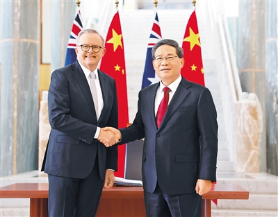 本报堪培拉6月17日电(记者陈效卫、王迪)当地时间6月17日上午,国务院总理李强在堪培拉议会大厦同澳大利亚总理阿尔巴尼斯举行第九轮中澳总理年度会晤。