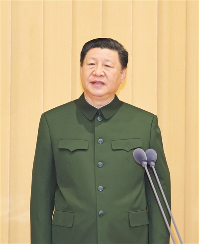 4月19日,中国人民解放军信息支援部队成立大会在北京八一大楼隆重举行。中共中央总书记、国家主席、中央军委主席习近平向信息支援部队授予军旗并致训词。这是习近平致训词。