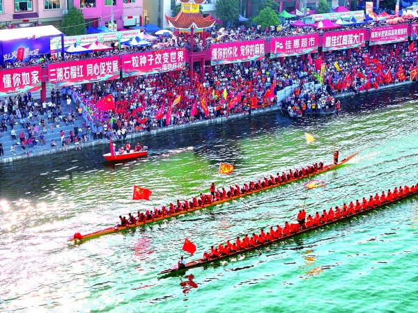 聚起一群人、带旺一座城。以龙舟为媒,麻阳还打造了一场文旅融合的精彩盛宴,精心策划了“龙舟宴”村厨争霸赛、滨江月夜音乐会等沉浸式体验活动,带动文旅综合消费突破2.8亿元,成为麻阳高质量发展的新引擎,更加生动诠释了文旅“一业兴”带动“百业旺”的发展理念。