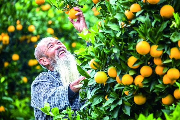 长寿老人在采摘麻阳冰糖橙。滕树明摄