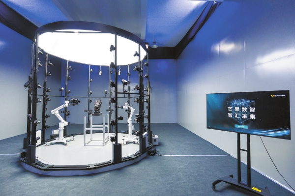 湖南省长沙市马栏山视频文创产业园以数字视频创意为龙头,汇聚了各类文化科技企业4000多家,推动文化和科技融合。基于文物神经核表面重建算法等自研技术,由芒果数智推出的数字文博大平台“山海”可大幅缩减文物采集时间。2024年8月19日,在“山海”上线发布会现场,技术团队在上海对文物“龙首”进行数字化采集,回传相关数据至长沙的实验室,并将采集结果实时发往发布会现场,整个过程耗时仅13分14秒,在文物建模被放大6—8倍后,细节依然清晰。图为发布会当日文物“龙首”数字化采集现场。湖南省委宣传部供图