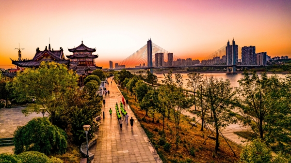 益阳资江风貌带,市民在散步、锻炼。王琼辉摄