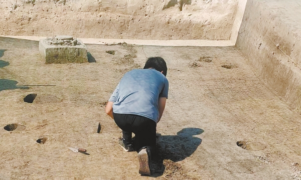 作者在南京西黄庄遗址进行发掘。作者供图