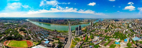 天朗气清,资江如同一条玉带轻拂益阳城区。(益阳市文旅广体局供图)