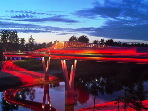 益阳城区建成一批小游园、游园步道,提升市民幸福感。图为人们在青龙洲上洲桥上休闲。杨兰锋摄