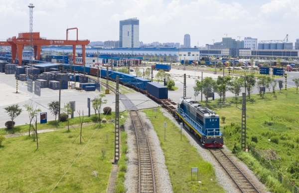 一列满载百货、零配件、日用品、电子产品的中欧班列,从长沙国际铁路港出发,前往波兰马拉舍维奇。辜鹏博摄