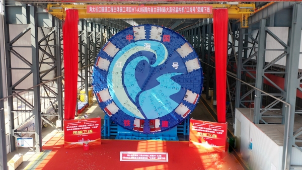 海太长江隧道工程主体施工项目HT-A3标国内自主研制最大直径盾构机“江海号”荣耀下线。长沙市科技局供图