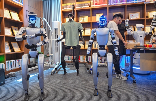 湘江实验室内,人形智能机器人正“列队”展示。郭立亮邹尚奇摄