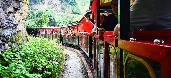 欢乐中寨号小火车穿行在绿水青山之间。