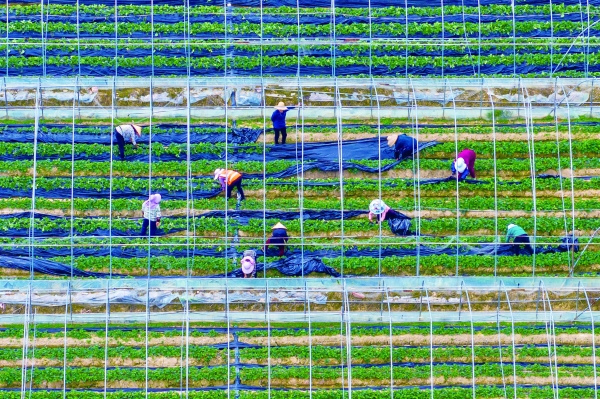 10月24日,桑植县澧源镇兴旺塔村,村民正在为草莓铺设地膜。向韬摄