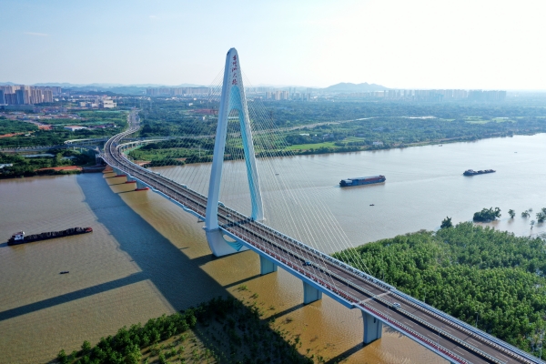 位于望城区的香炉洲大桥,将湘江东西两岸通行车程从半小时缩短为五六分钟。田超摄