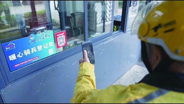 骑手友好传情:落地40余个“骑手友好小区”试点,24个小区开通“骑手码”(1410名骑手认证),扫码秒进免登记;配套“暖心驿站”,提供急救包、维修工具、冷藏水等,成为新就业群体的温馨港湾。