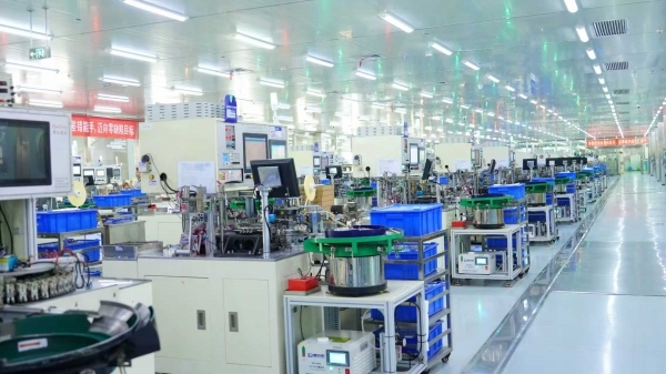 铝电解电容器产业龙头企业艾华集团生产车间。