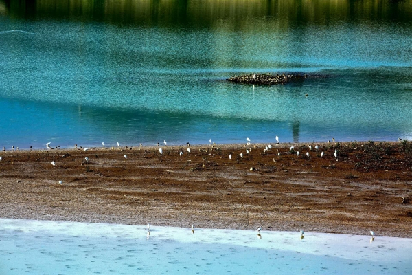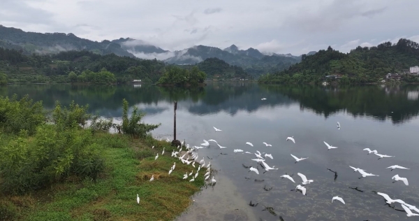 9月9日,古丈县栖凤湖水清岸绿,鹭鸟翔集。美丽大湖成为鸟类栖息的天堂。杨昊天摄