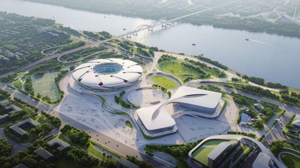 长沙奥体中心效果图。(长沙市长株潭一体化发展事务中心供图)