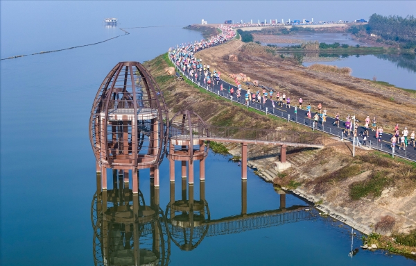 参赛者们在环湖健康跑中领略自然之美。(大通湖区委宣传统战部供图)