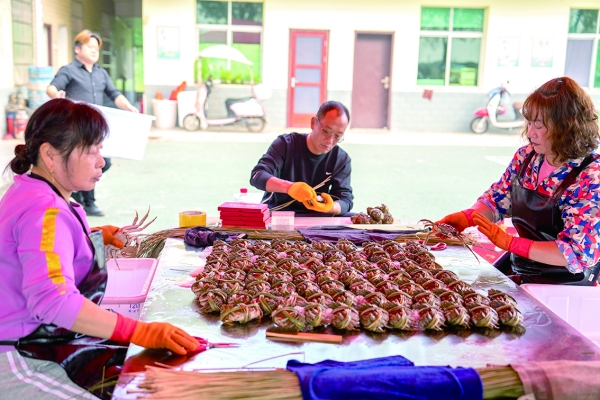 工作人员对大闸蟹进行整理捆扎。陈思汗摄