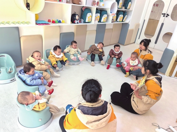 在雨花区托育综合服务中心,老师们正在和孩子进行早期发展活动。