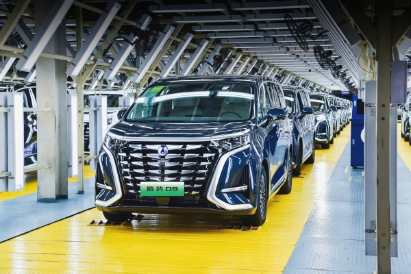 比亚迪新能源汽车生产线开足马力,科技感拉满的“腾势D9”新车鱼贯而出。