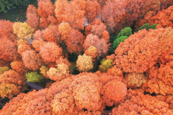12月4日,靖州苗族侗族自治县排牙山国家森林公园,千亩水杉红了。田其珍摄(湖南图片库)