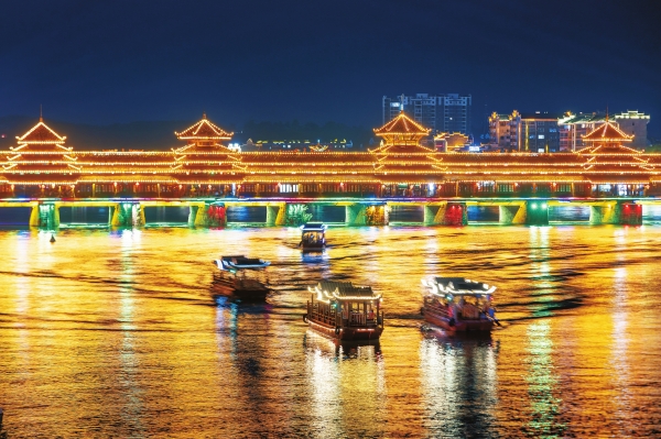 光影变幻的芷江侗族自治县和平湖,为游客带来全新的夜游体验。(资料图片)湖南日报全媒体记者辜鹏博摄