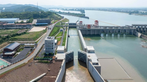 澧水石门至澧县航道艳洲枢纽船闸成功试航。卢赐军摄