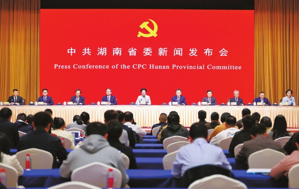 11月29日,省委举行新闻发布会,介绍和解读省委十二届九次全会精神。本版照片由湖南日报全媒体记者傅聪辜鹏博郭立亮邹尚奇易昂摄