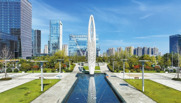 9月15日,马栏山公园雕塑上的“中国V谷”,彰显该区域在视频文创产业的重要地位。