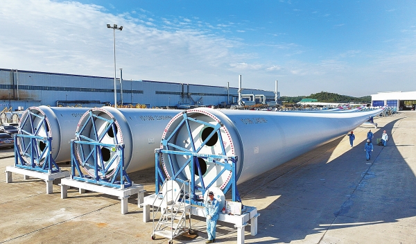 株洲时代新材料科技股份有限公司,工作人员在加工风电叶片。(资料图片)