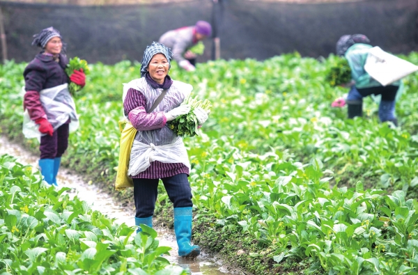 江华精心打造粤港澳大湾区“大菜园”,村民在田间采摘蔬菜,“江华味道”从这里走向全世界。(江华县委宣传部供图)